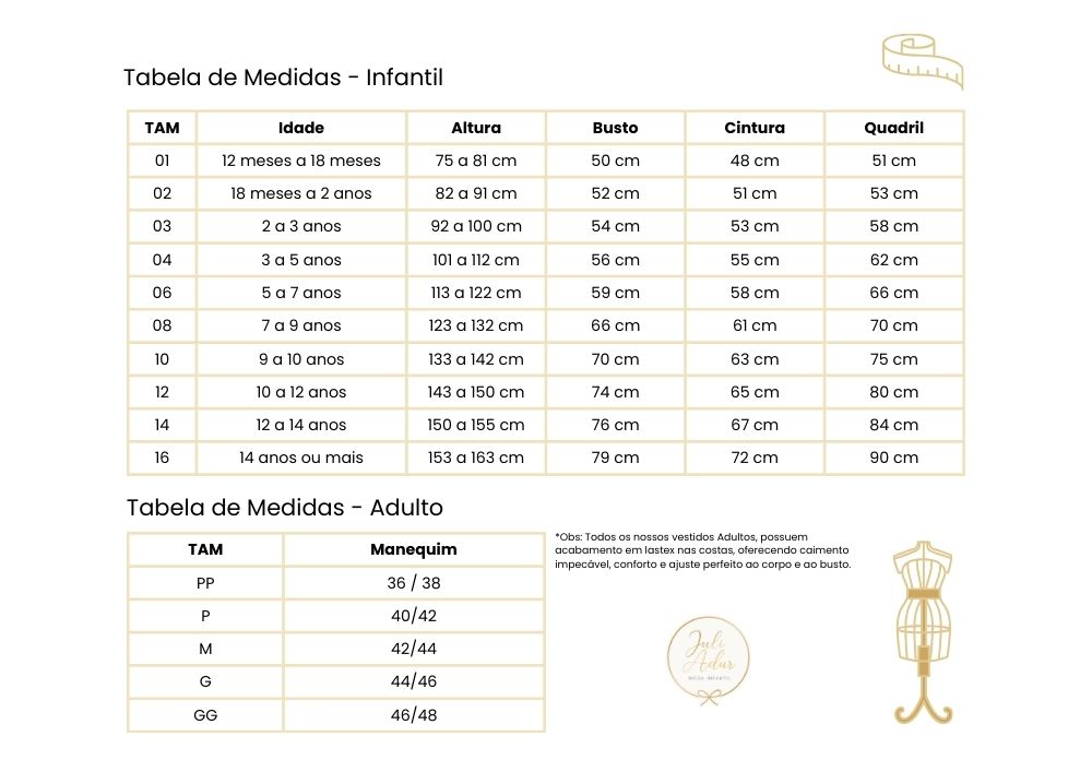 Confira nossa tabela de medidas e escolha o tamanho perfeito!